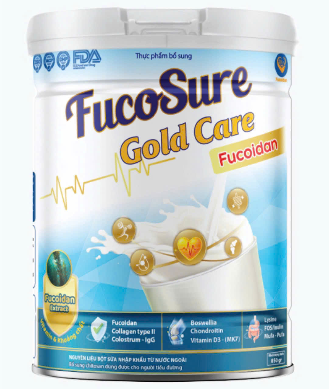 FucoSure Gold Care là thực phẩm bổ sung dinh dưỡng dạng bột, được phát triển dành cho người trưởng thành, đặc biệt phù hợp với người trung niên – cao tuổi hoặc người cần bồi bổ sức khỏe, tăng cường đề kháng, hỗ trợ xương khớp và hệ tiêu hóa mỗi ngày.